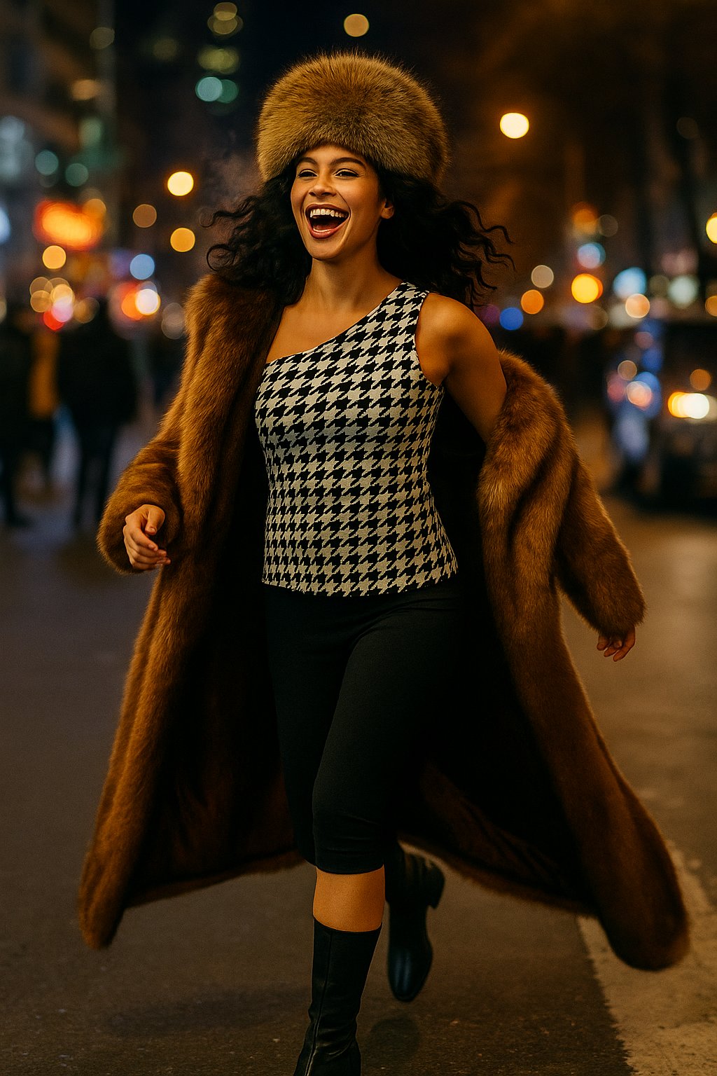 Houndstooth One-Shoulder Top